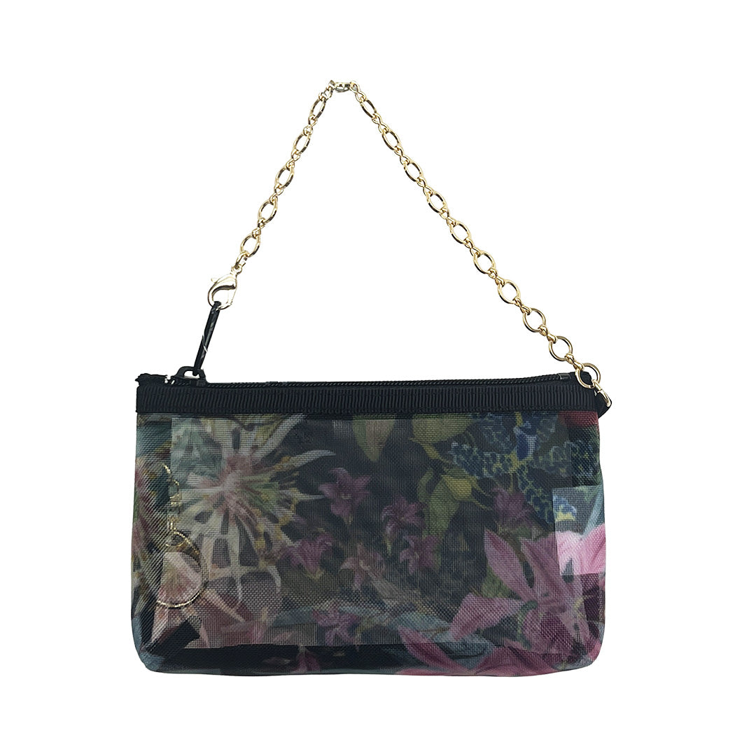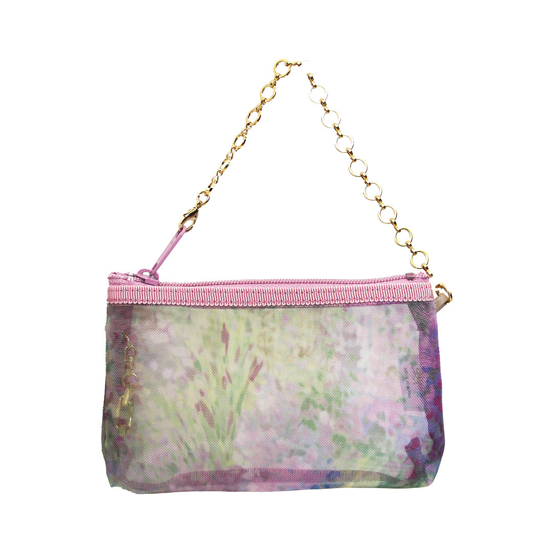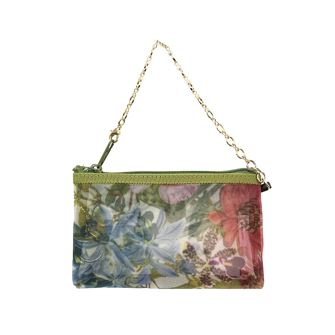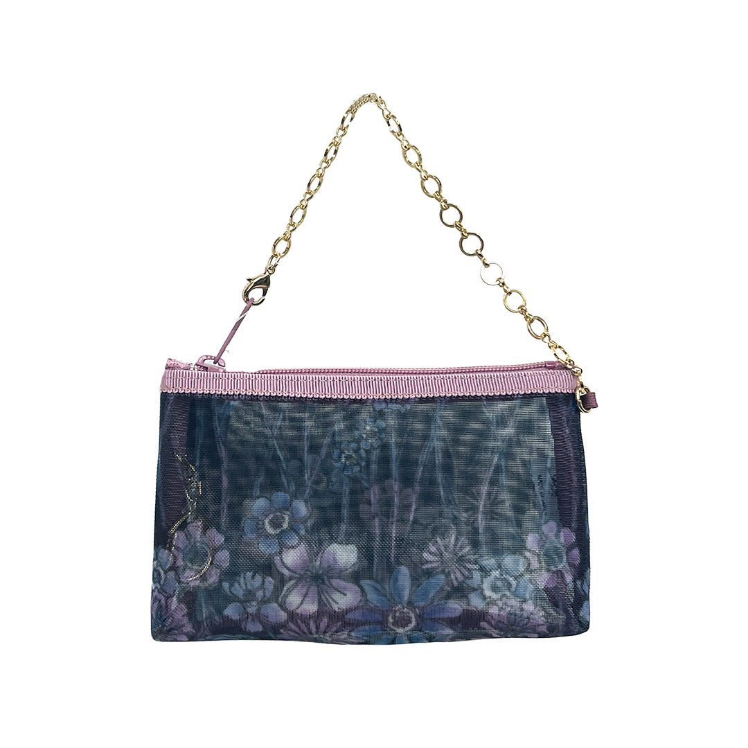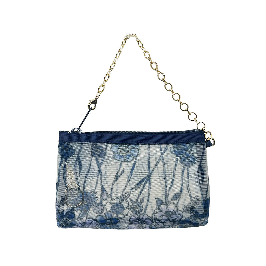 ハリのあるネット素材のキーポーチ。チェーンがついているので、バッグハンドルにかけられます。キーケースとしてだけでなく、コインケースやミニポーチなどとしても使えます。