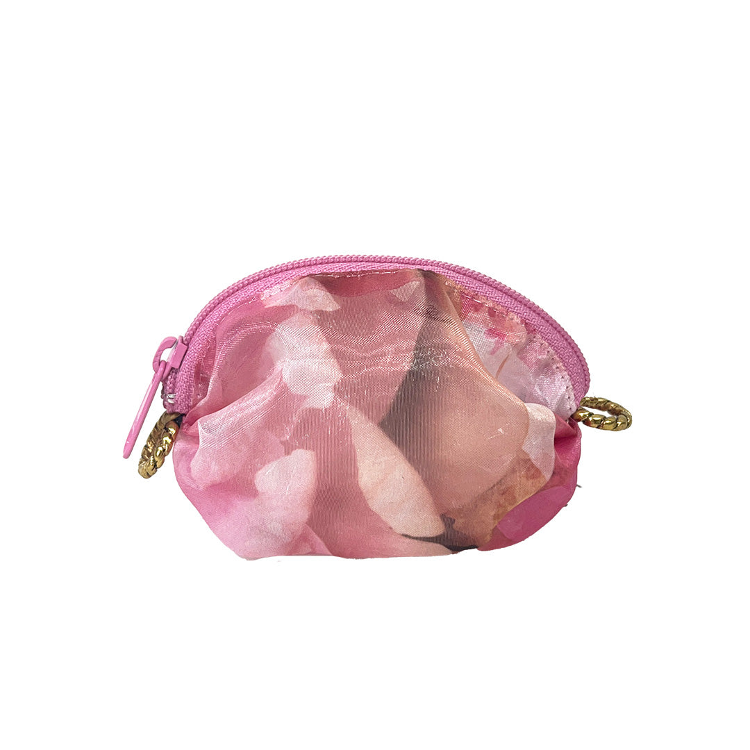 薄くて軽いオーガンジー素材のポーチです。バッグの中でかさばらず、中身が見えそうで見えにくい、自分だけ中身が分かる透け感がポイント。バッグの中の小物の整理に便利です。大・中・小サイズがあります。(こちらは小サイズになります)