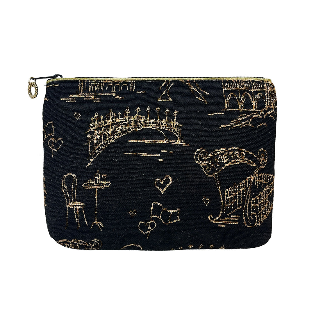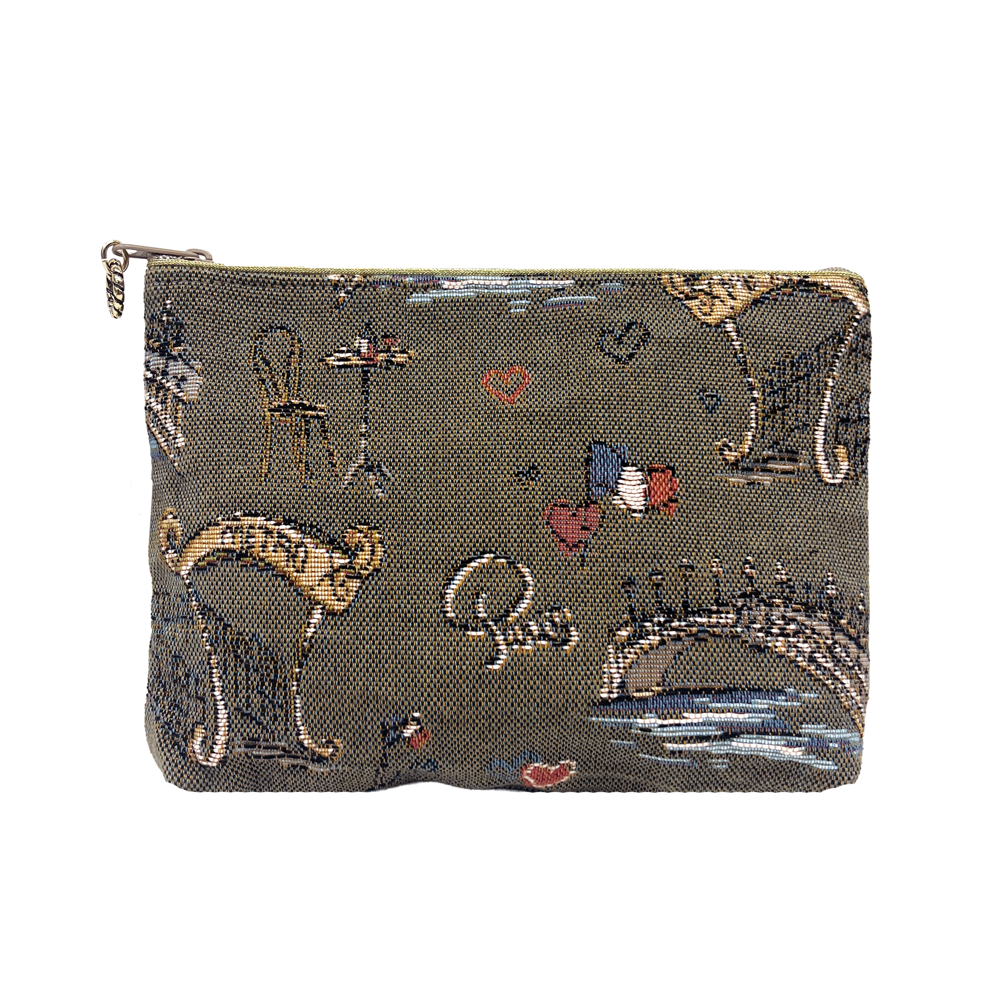 スクエア型の大きめゴブランポーチ。長いものや、大きめのファンデーションなどを入れるのに便利。ギフトにも喜ばれます。