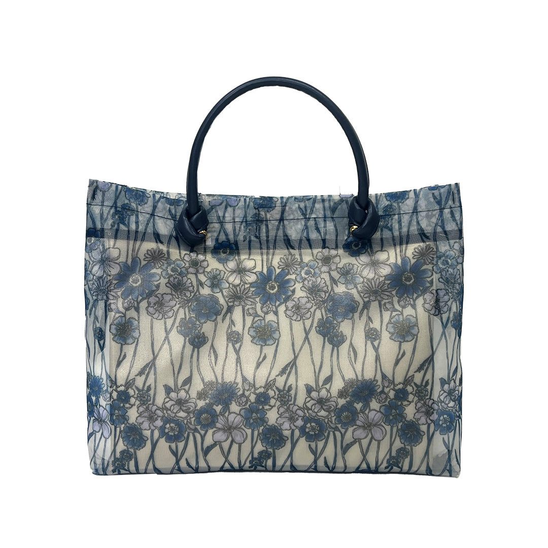 ハリのあるネット素材の軽量バッグ。ネット素材特有の透け感が夏らしく涼やか。ポケットが目隠しになり、バッグの中身が見えにくいのも安心です。持ち手は牛革、シンプルですっきりとしたスクエア型のデザインです。