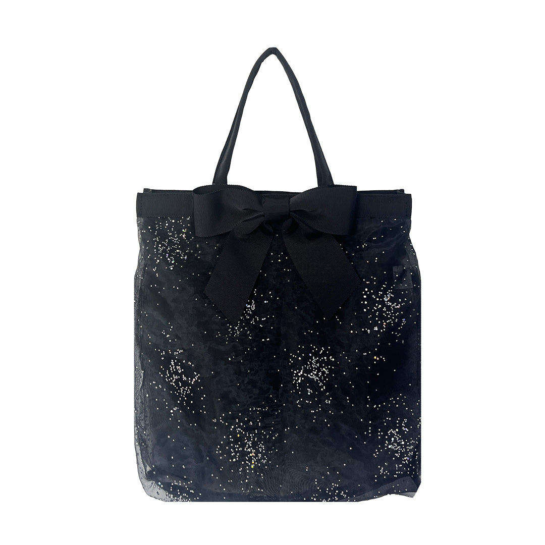 薄くて軽いオーガンジー素材のびっくりする軽いバッグです。中身が見えそうで見えにくい素材でお出かけに重宝します。バッグインバッグとしても便利です。リボンが程よいアクセントになり、プレゼントに喜ばれる商品です。