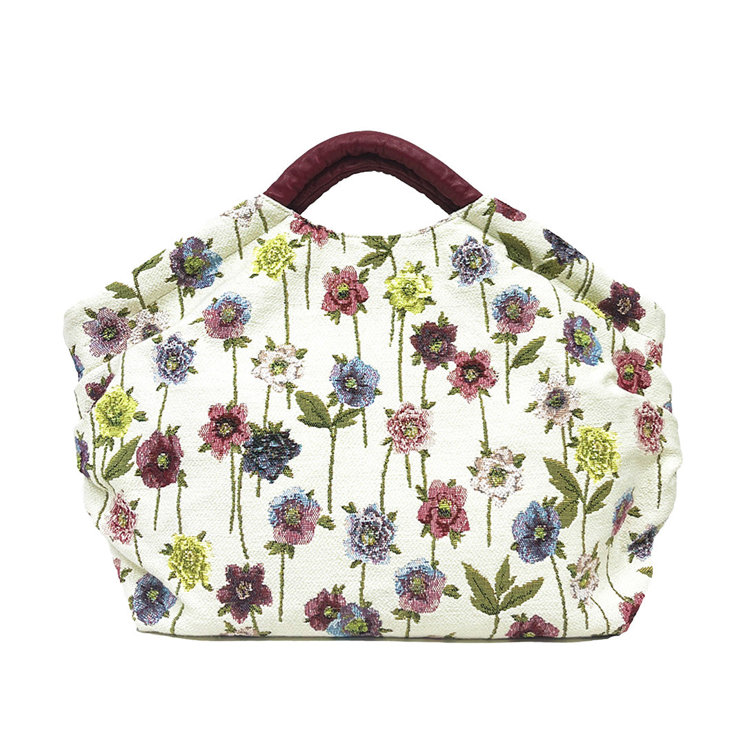 両サイドのタックが印象的なハンドバッグ。ふっくらとしたシルエットで持ち物もたくさん入ります。底鋲が付いており置くときにも安心です。